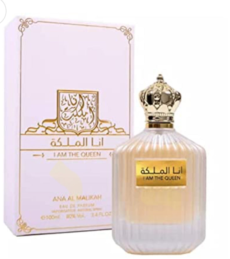 Es una fragancia femenina oriental, elegante y envolvente, diseñada para mujeres que quieren destacar con presencia y lujo. El frasco con forma de corona dorada y detalles árabes refleja realeza, sofisticación y feminidad. Esta fragancia combina dulzura floral con una base cálida y cremosa.